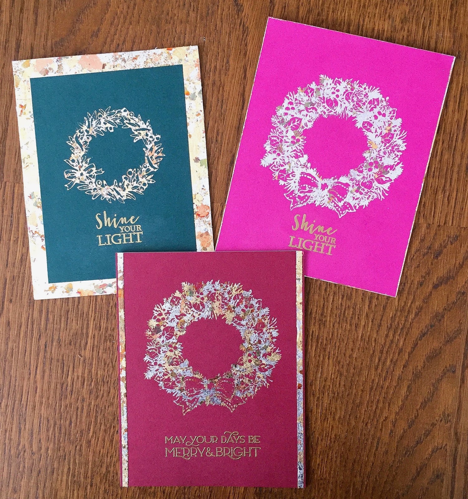 To wrap it up: Yes, this is a more intense process than heat embossing, or even foiling. But, at the end of your crafting session, you’ll have a collection of one-of-a-kind shimmering card-fronts: lovely and personal and definitely handmade!