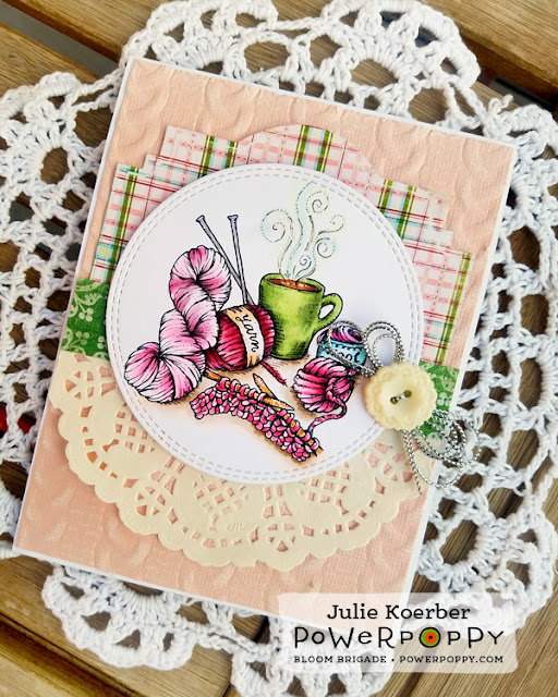I have to say, with fall here, I had a hankering to use Power Poppy's Get Wool Soon digital stamp set. Can you believe that I.... a knitter.... had never used this little number before? Oh my! What's wrong with me?!?!?!! The good news is that I tend to knit quite a bit in the fall for others, for gifts, so this little digi is going to be used quite a bit!