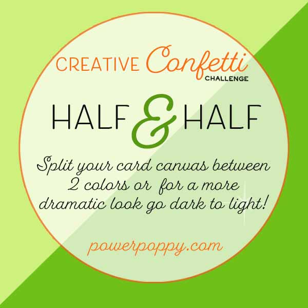 So, try last week's challenge or go "Half & Half" and cue up this week's Creative Confetti Challenge. No matter which one you choose, don't forget to link up your creation so we can 1. see it and 2. get you in the running for some Power Poppy goodness!