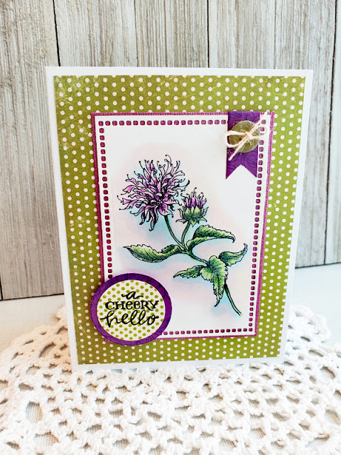 And, here's a close up for you! You can see I matted it up, playing up the green and purple and adding just a few accents. The sentiment was from the Power Poppy set Potted Primrose. I love that sentiment -- one of my favorites!