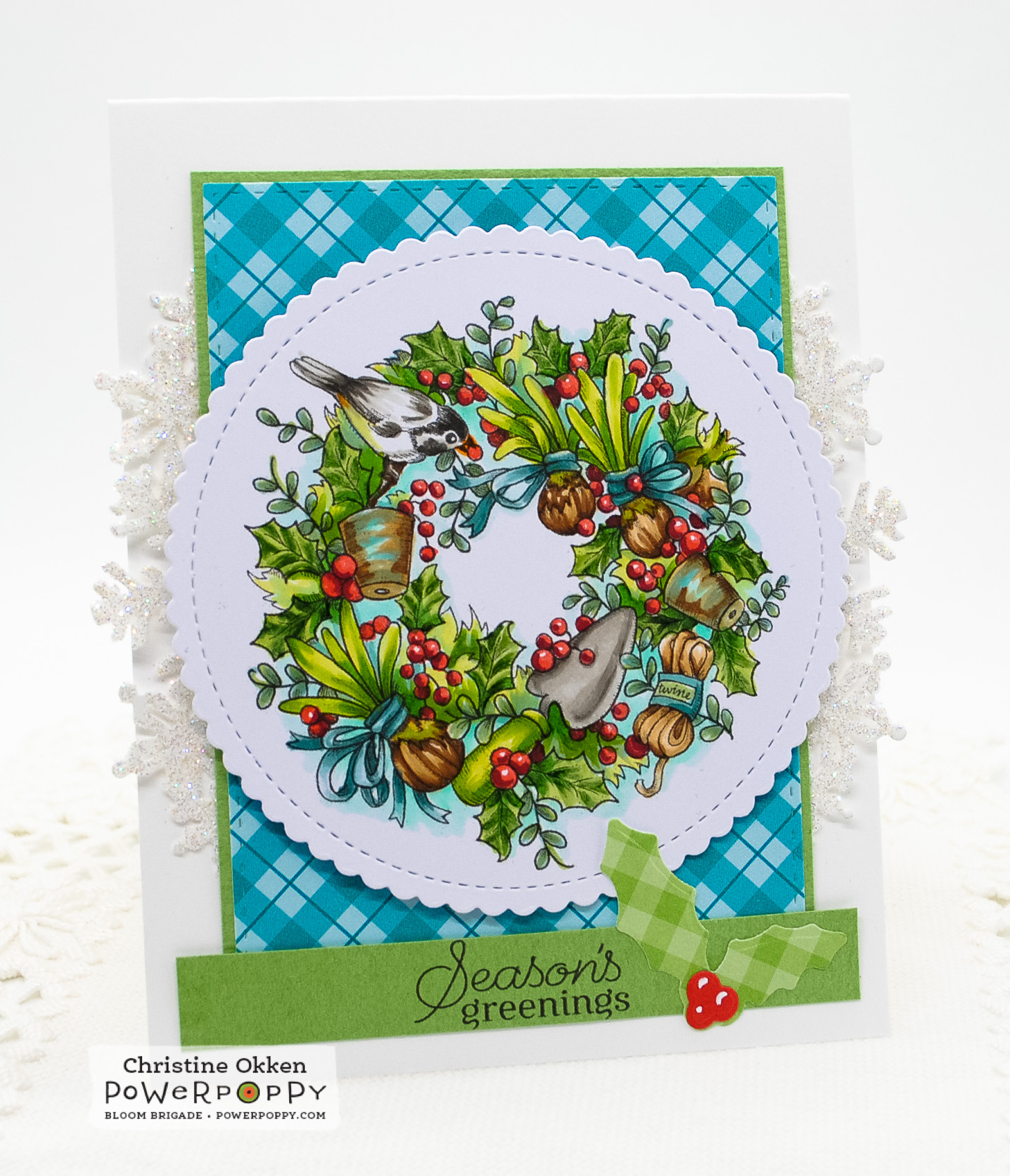 Totally wow!! I am loving that wheelbarrow with the tree and the little Santa is darling. Your Bloom Brigade ROCKED the coloring once again!